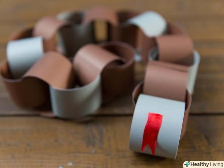 Протягніть наступну смугу картону в кільце і склейте кінці в кільце.[7] повторюйте до тих пір, поки не витратите всі смуги. Змійка може бути одноколірної і різнобарвною за вашим бажанням, з постійним або хаотичним порядком кольорів.