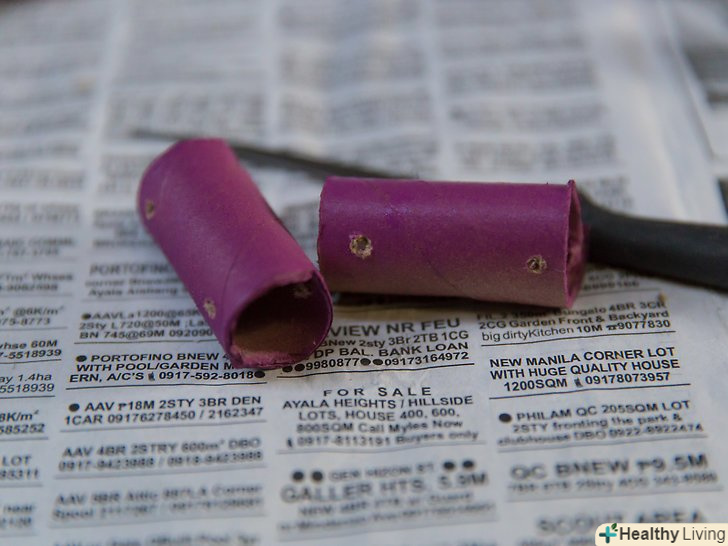 Зробіть два отвори в голові і кінчику хвоста.отвори повинні розташовуватися рівно один навпроти одного.