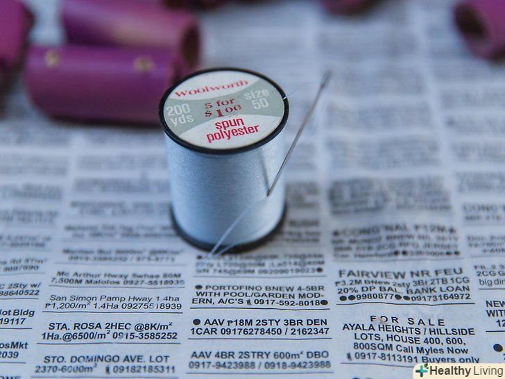 Відріжте кілька шматків ниток довжиною по 12 сантиметрів кожен.[9] буде потрібно достатня кількість ниток, щоб зв'язати всі деталі змійки між собою.