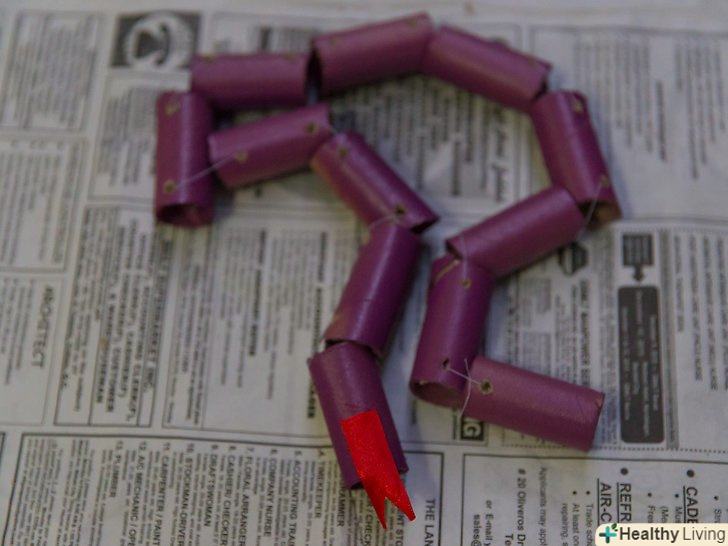 З'єднайте деталі за допомогою пряжі.не зв'язуйте занадто туго, щоб змійка могла звиватися. Між кожною деталлю повинен залишатися невеликий зазор. Постарайтеся приховати вузли всередині втулок.