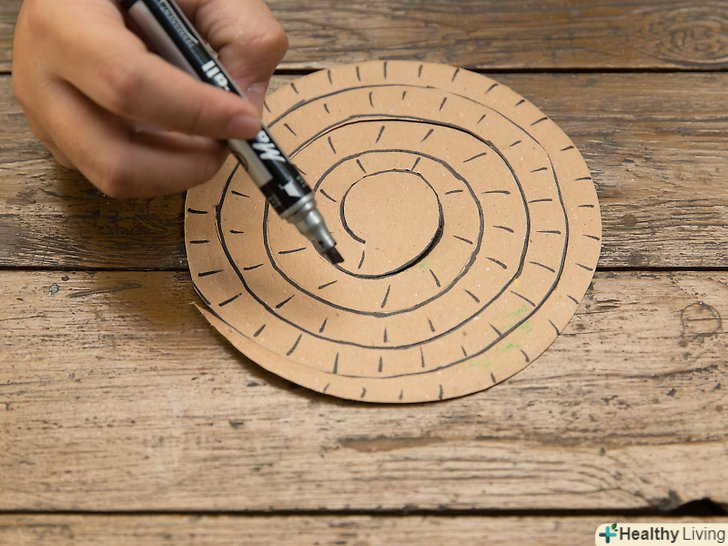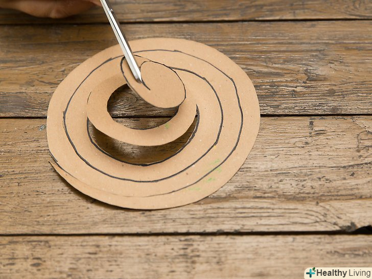 Розріжте тарілку по контурах спіралі.починайте з зовнішньої частини і рухайтеся до центру. Не відходьте від контурної лінії, щоб на готовому виробі не залишалося слідів олівця або маркера.