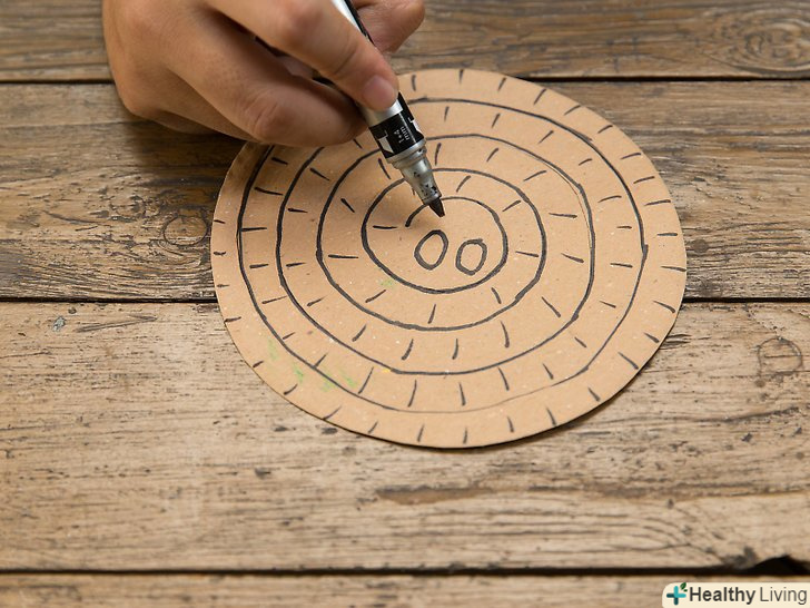 Намалюйте спіраль на нижній стороні тарілки.відстань між лініями повинна становити близько 12 міліметрів. Спіраль не повинна бути ідеальною, але постарайтеся малювати досить рівні кола. Центральна частина спіралі стане головою змійки, тому намалюйте центр заокругленим.- Малювати слід на нижньому боці, щоб зверху не залишалися олівцеві контури.