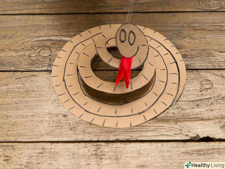 Зробіть отвір в змійці, щоб підвісити виріб.отвір можна виконати на кінці хвоста, між очей або прямо в мові. Протягніть в отвір шнурок і зав'яжіть на вузол. Тепер змійку можна прив'язати до ручки дверей, тростині або кнопці в стіні.