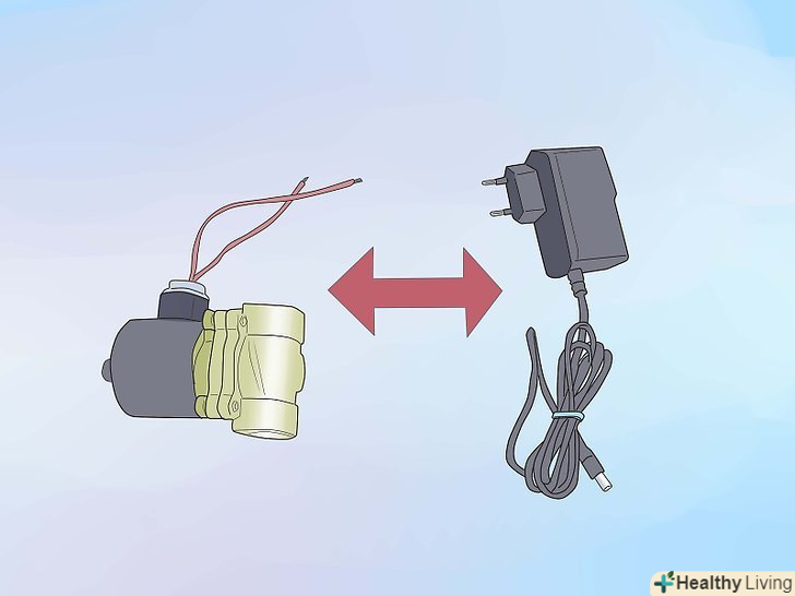 Підключити 24V DC або джерело живлення змінного струму до соленоїду. 3 9V батареї з'єднані разом (в серії), щоб зробити роботу 27V. 12V акумулятор буде працювати занадто ефективно. При подачі напруги відкрийте клапан, відключаючи його, клапан повинен бути закритий.