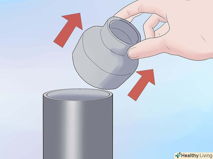 Створіть повітряну камеру.скоротіть дві довжини 2 дюймової (5,08 см) труби діаметром 30 дюймів і третину 6 дюймової (15,24 см) довжини. На одному кінці склейте на 2" x1 " затичку x FIPT труби перетворювача даних. Щоб зробити це, приклейте втулку в загальну зв'язку, потім приклейте зв'язку на трубу. Використовуючи лікті, зробіть U-подібну трубу з 6-дюймовою секцією як підставу U. вимкніть велосипедну трубу, залишаючи клапан і маленьку відкидну стулку гуми навколо клапана, приблизно 3/4 дюйма(7-10см) шириною. Перш, ніж склеїти заглушку на трубі, просвердлите отвір в центрі, досить велике для велосипедного клапана. Вставте вирізаний з труби клапан, і, використовуючи гайку, стисніть клапан на верхівці. Склейте верхівку на відкритому кінці труби. Де внутрішня різьба проходить через ніпель труби довжиною 3 дюйми. Обов'язково використовуйте стрічку тефлону на зовнішній різьбі соски!