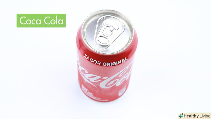 Візьміть баночку або пляшку Кока-КолиCoca Cola.Необов'язково купувати справжню Кока-Колу, підійде Кола будь-якої марки.- Розподіліть монети в склянці, щоб вони не прилягали один до одного.Кислота, що міститься в колі, повинна взаємодіяти з кожною монеткою.