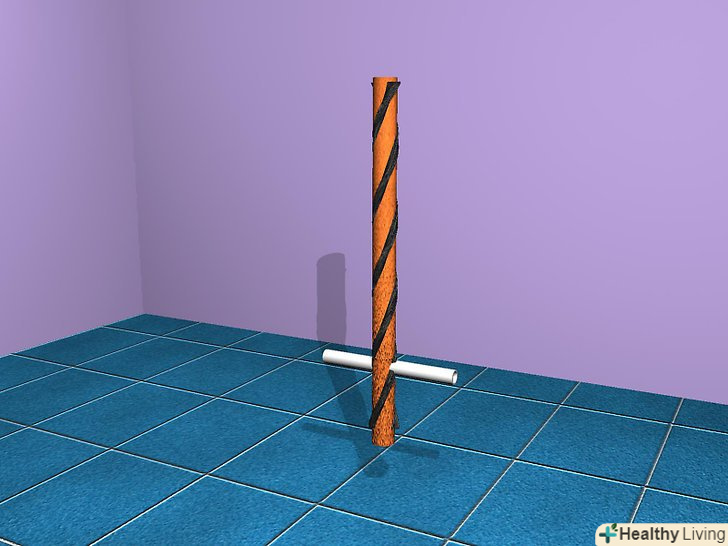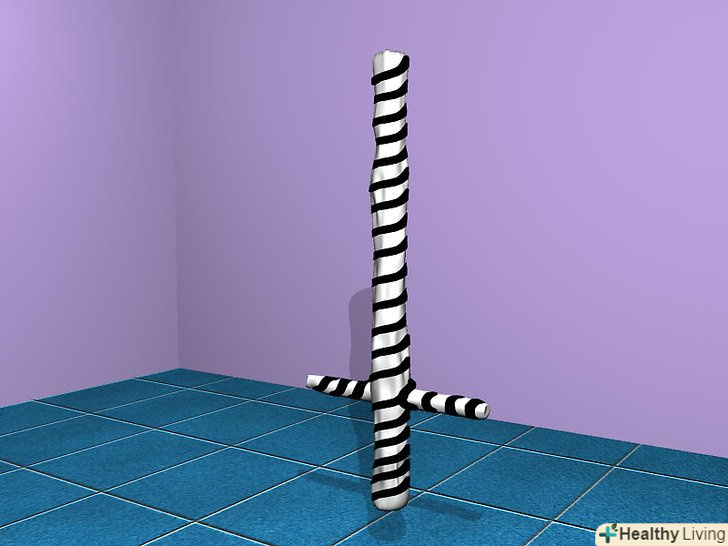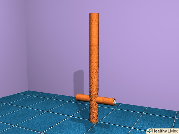 Додайте гарду.якщо хочете, ви можете додати гарду, надівши чотиристоронній фітинг для труб, на кінець Ефеса основного шматка ПВХ труби. Відріжте два коротких шматка ПВХ труби однакової довжини. Одягніть по шматку з кожної відкритої сторони фітинга, щоб створити гарду. Як тільки ви будете задоволені її шириною і положенням, використовуйте цементний клей, щоб закріпити кожен шматок на місці.