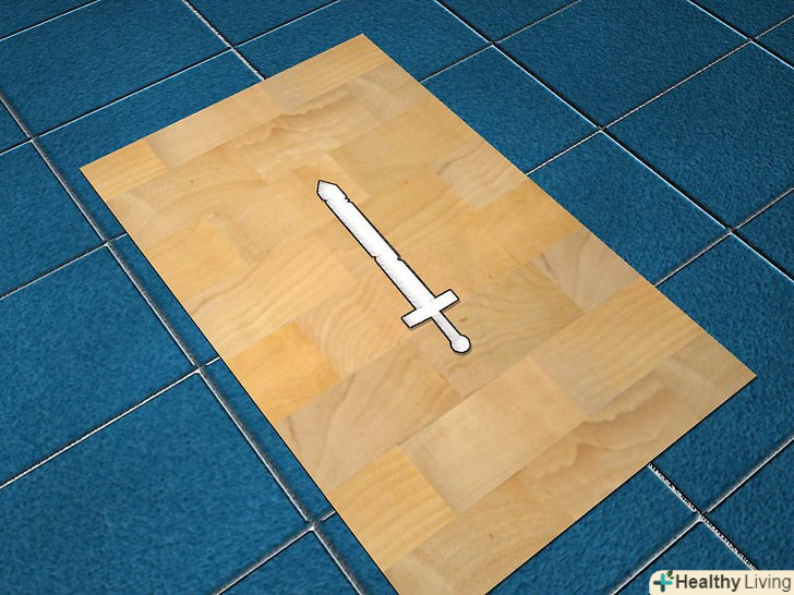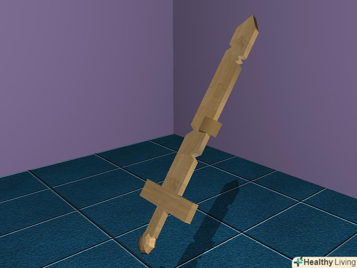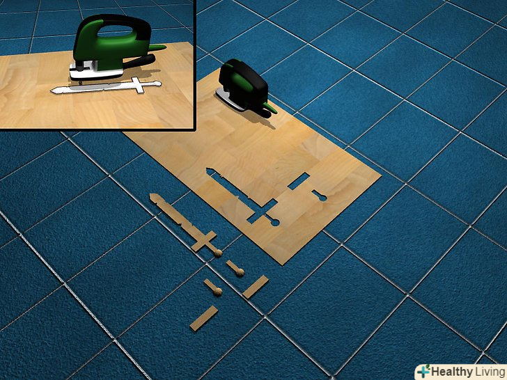 Відріжте дерево.використовуючи пилку, виріжте три шматки дерева, на яких ви намалювали контур – два шматки Ефеса і цілий меч. Розрізи, скоріше за все, будуть грубими, але нічого страшного. Переконайтеся, що ви вирізаєте ширший шматок, ніж чим вужчий, так як широкий шматок можна підрізати, а вузький шматок складно виправити.