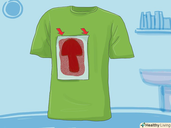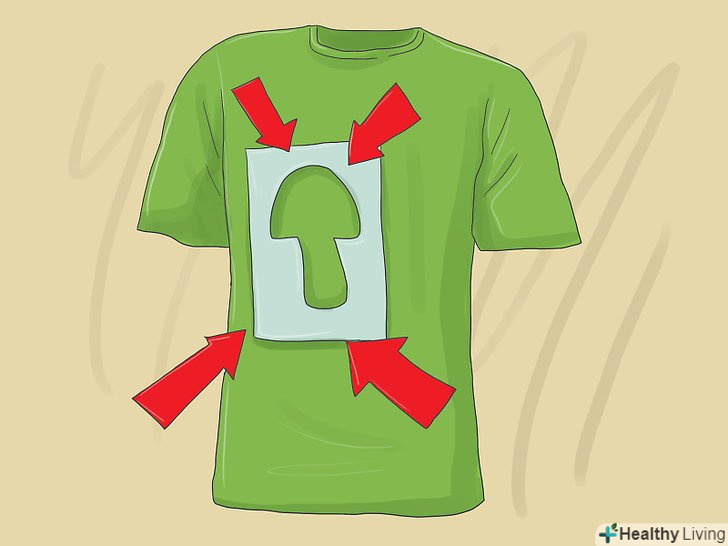 Розташуйте трафарет.помістіть трафарет стороною з клейкою речовиною вниз на потрібне місце на футболці. Добре притисніть, щоб трафарет приклеївся до футболки.- Через кілька хвилин перевірте, чи надійно зафіксований трафарет на потрібному місці.