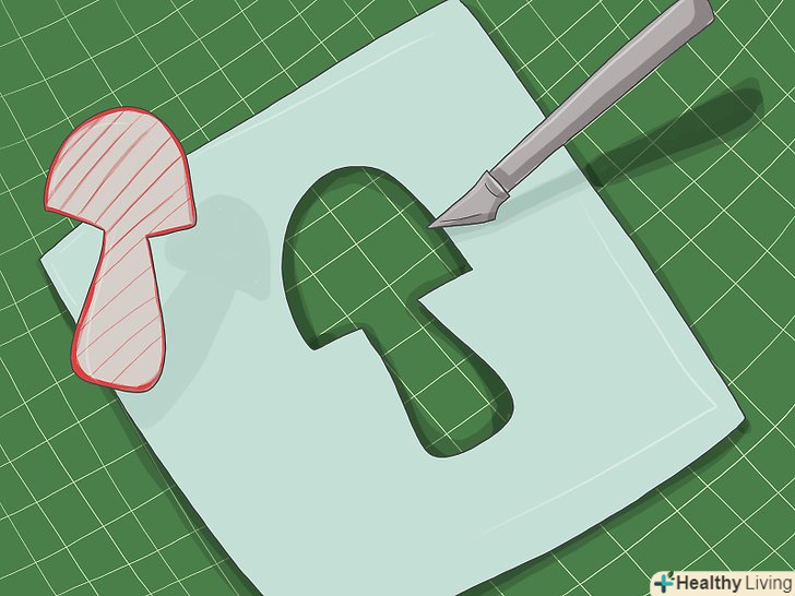 Виріжте трафарет.помістіть матрицю для висічки під повстяний фетр, потім акуратно виріжте по з'єднувальних лініях. Приберіть залишки матеріалу, залишаючи закінчений трафарет.- Для більшості ескізів відмінно підійде універсальний або канцелярський ніж. Ескізи з великою кількістю деталей будуть виглядати краще, якщо використовувати спеціальне випалює пристрій для створення трафаретів.
