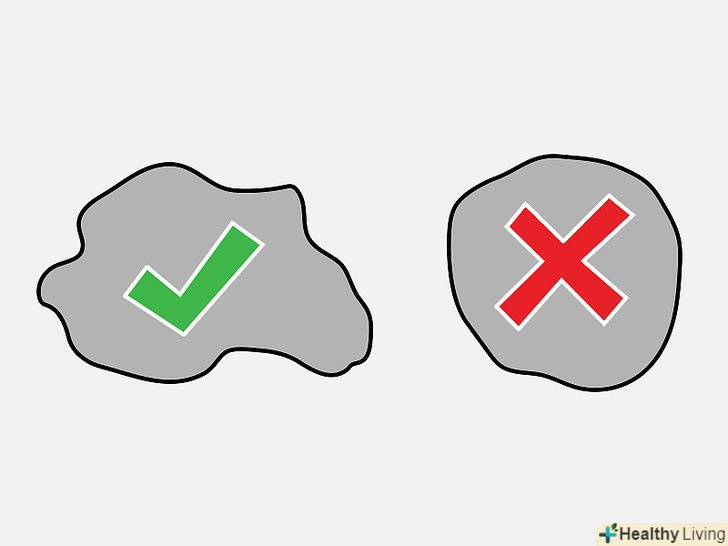 Переконайтеся, що камінь має неправильну форму.це може здатися вам дивним, але більшість метеоритів не круглі. Навпаки, вони мають досить неправильну форму, а різні їх боку розрізняються за розміром і формою. Хоча деякі Метеорити можуть мати конічну форму, більшість не виглядають аеродинамічними, коли знаходяться на землі.[2]- Хоча форма метеоритів неправильна, краї більшості з них округлі, а не гострі.[3]