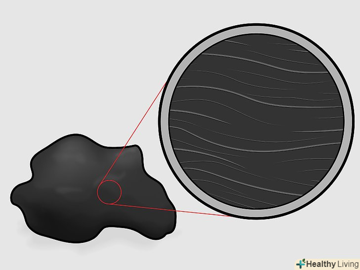 Оцініть, чи має камінь чорний або іржаво-бурий колір. якщо камінь, який Ви знайшли, це недавно впав метеорит, він буде чорним і блискучим, через те, що він обгорів, проходячи через атмосферу. Але якщо метеорит довго пролежить на Землі, металеве залізо в ньому перетвориться в іржу, що додасть йому іржаво-бурий колір.[1]- Іржа починає з'являтися у вигляді маленьких червоних і помаранчевих цяток на поверхні метеорита, які потім поступово покривають все більшу і більшу площу. Ви можете побачити чорну кірку, навіть якщо вона частково почала іржавіти.