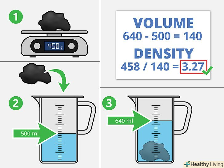 Підрахуйте щільність каменю, якщо він здається вам важче звичайного.Метеорити-це тверді шматки породи, в якій зазвичай багато металу. Якщо камінь, який Ви знайшли, виглядає як метеорит, порівняйте його з іншими каменями, щоб переконатися, що він відносно важкий, потім підрахуйте його щільність, щоб визначити, чи є він метеоритом.[13]- Ви можете порахувати щільність потенційного метеорита, розділивши його масу на його обсяг. Якщо це дійсно метеорит, його щільність, швидше за все, буде вище 3 г/см3.[14]