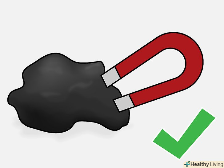 Перевірте за допомогою магніту, чи володіє ваш камінь магнітними властивостями.практично всі Метеорити хоча б трохи магнітні, хоча це властивість буває слабо виражено. Магнітність виникає через високий вміст в більшості метеоритів заліза і нікелю, які володіють магнітними властивостями. Якщо магніт не притягує знайдений вами камінь, це майже точно не метеорит.[15]- Так як багато земні породи теж магнітні, позитивний результат перевірки на магнітні властивості не доводить остаточно, що камінь, який Ви знайшли, — метеорит. Однак її негативний результат-це дуже сильна ознака того, що ваш камінь — не метеорит.