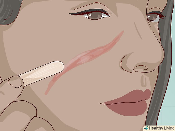 Додайте шраму кольору.колір шраму буде залежати від натурального кольору шкіри. Косметичний засіб можна наносити поверх шраму або під коллодій.