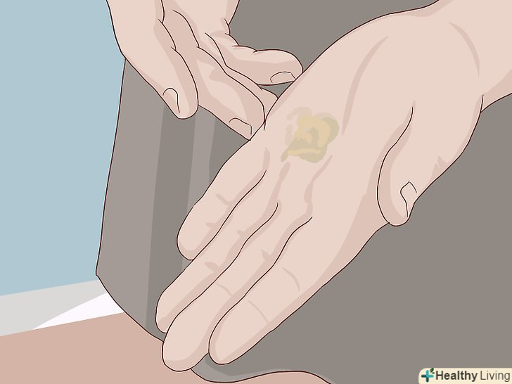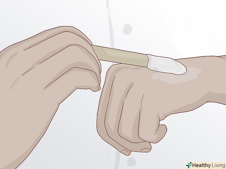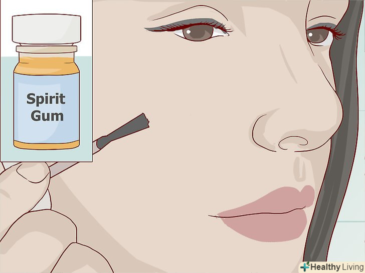 Нанесіть на шкіру клей.деякі різновиди воску добре клеяться, тому їм клей не буде потрібно. Але якщо ви боїтеся, що шрам можна буде зачепити, нанесіть трохи клею, щоб надійно зафіксувати його на кілька годин.[10]- Нанесіть клей на ділянку шкіри, на якому ви будете фіксувати шрам. Шкіра повинна стати липкою.