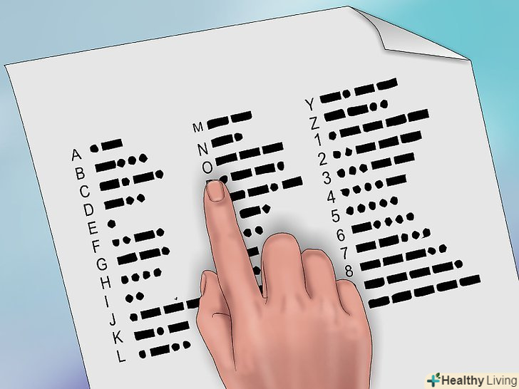 Знайдіть копію азбуки Морзе (таку, як показано в кінці сторінки). Ви можете використовувати базову таблицю, таку як показана справа (натисніть, щоб збільшити) або ви можете використовувати більш складний варіант, який включає в себе пунктуаційні знаки, абревіатури, стійкі вирази і коди. [1] співвіднесіть те, що ви почули з буквами алфавіту. Яке слово вийшло? Чи були ви праві?Деяким людям легше вивчати абетку Морзе записуючи точки і лінії, а потім порівнюючи їх з таблицею, так як показано на зображенні; інші вважають, що такий спосіб тільки уповільнює процес навчання. Робіть так, як вам більше подобатися. Якщо ви виберете спосіб, який не передбачає транскрипції записаних точок і ліній, то ви можете використовувати таблицю вимови, яка містить звуки сигналів азбуки Морзе, таким чином, як ви їх чуєте. [2]