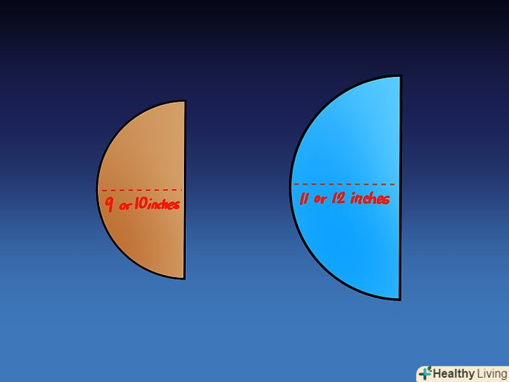 - Розмір буде змінюватися в залежності від віку власника. Для малюка або маленької дитини радіус буде 9 або 10 дюймів (23 або 25 см) довжиною. Для підлітка радіус буде 11 або 12 дюймів (28 або 30 см).