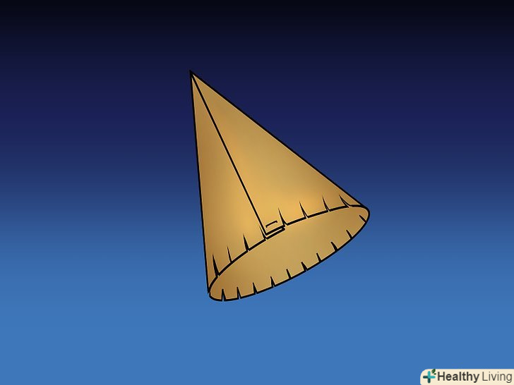 - Якщо ви працюєте зі стійкою до зношування тканиною, такою як фетр, можете не хвилюватися про краї. При використанні не такого міцного матеріалу необхідно підігнути краю з усіх боків на 1/2 дюйма (1,25 см) на шви, перш ніж згорнути її в конус.