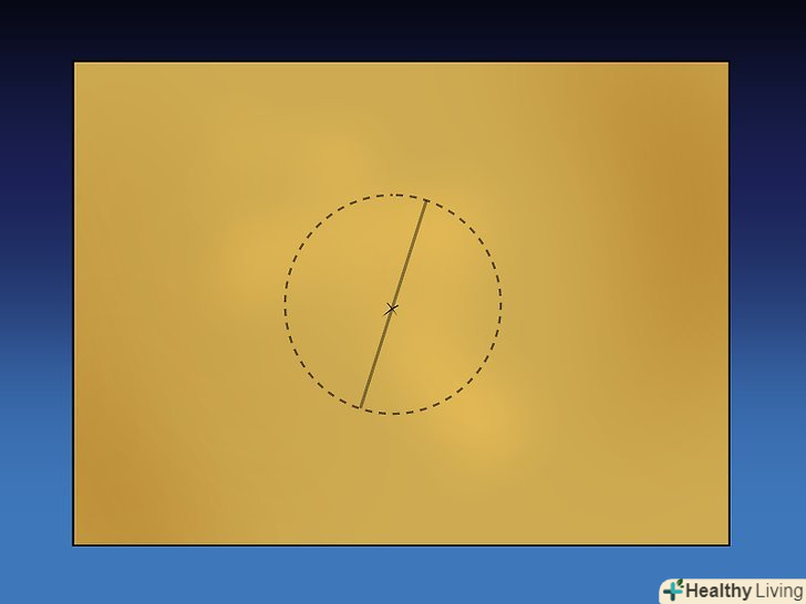 - Малюючи внутрішнє коло полів, поставте циркуль на середину лінії і зафіксуйте на ньому відстань, рівну половині довжини даної лінії. Ведіть циркуль так, щоб він пройшов через діаметр з одного і з іншого боку.