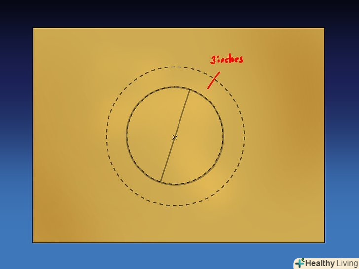 - Далі встановіть циркуль на відстань, яка на 3 дюйми (7,6 см) більше радіуса внутрішнього кола. Відштовхуючись від тієї ж центральної точки, намалюйте велику окружність навколо меншою.