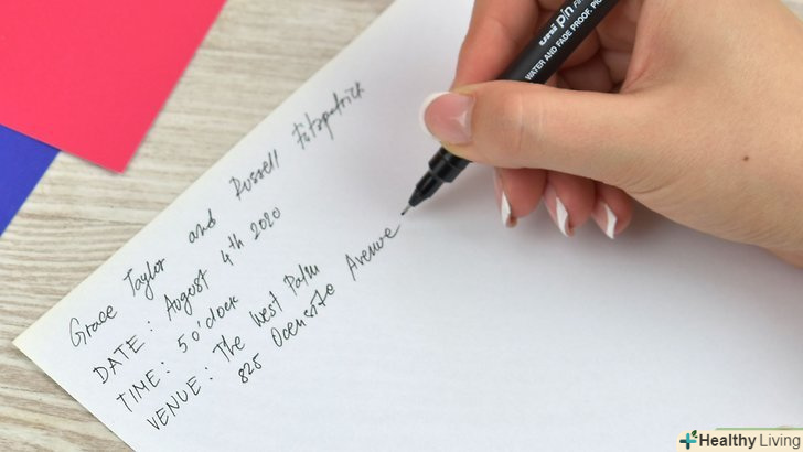 Визначтеся з текстом. на запрошення вам необхідно нанести основну інформацію, щоб всі прибули в правильний час, в правильний день і в потрібне місце. Переконайтеся, що підтвердили всі домовленості за часом і місцем, перш ніж сісти і взятися за запрошення.- Подумайте про додаткову інформацію, яку вам, можливо, необхідно внести, як, наприклад: контактний номер телефону, уточнення з приводу вбрання або подарунка, план або карта, або інтернет-адреса (якщо з нагоди події ви створили сайт).