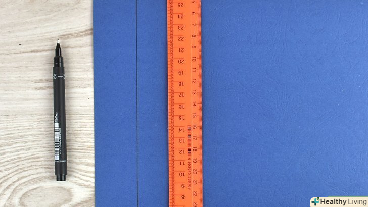 Відміряйте кишеню. покладіть горизонтально на стіл перед собою шматок щільного паперу, який буде скласти кишенею. За допомогою лінійки з нижнього лівого кута паперу намалюйте горизонтальний прямокутник 4,5 см заввишки і 17,5 см в довжину.- Вирізати. використовуючи ножиці або ніж, виріжте горизонтальний прямокутник, який ви тільки що відміряли. Приберіть зайві шматочки паперу.