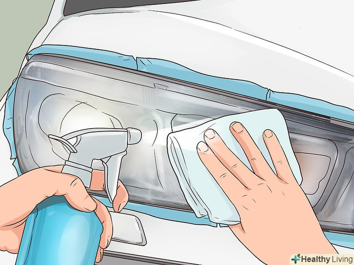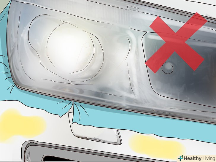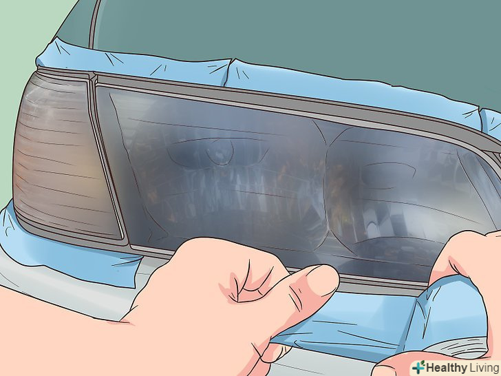 Приклейте стрічку навколо фари.Захистіть фарбу на автомобілі за допомогою ізоляційної або фарбувальної стрічки. Не використовуйте клейку стрічку, інакше фарба на вашому автомобілі може відійти.[4]