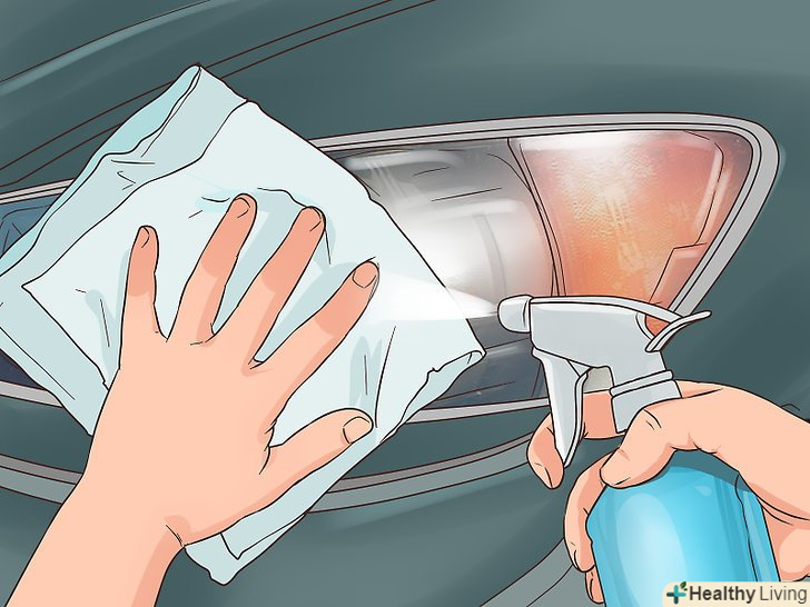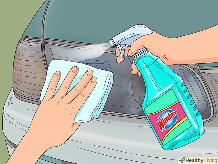 Якщо пошкодження знаходиться на зовнішній стороні розсіювача, спробуйте насамперед видалити його за допомогою засобу для очищення скла, таким як Windex (замовити його можна в інтернеті, або пошукайте аналогічний).крім того, для очищення розсіювача фари можна використовувати розбавлений знежирювач.