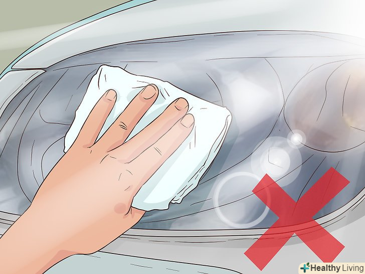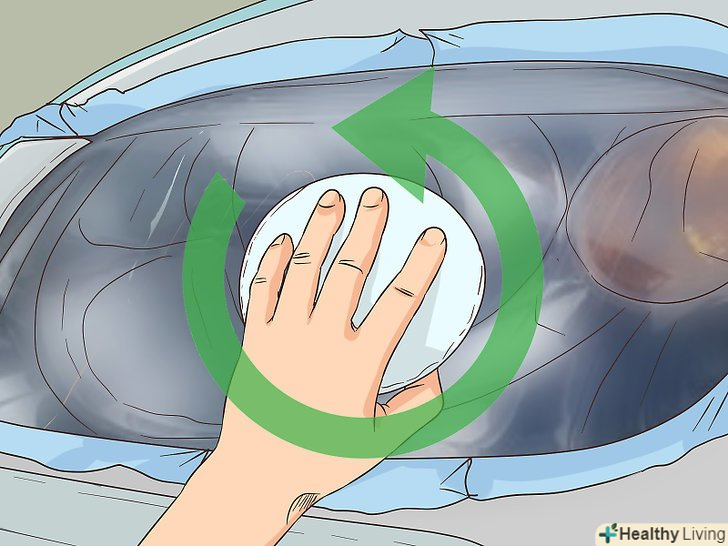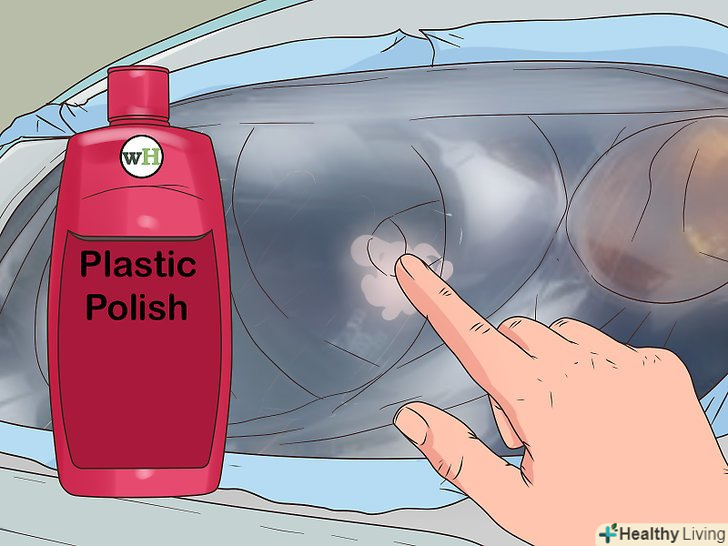 Очистіть від слідів окислення.- Занурте палець в поліроль для пластику або інший засіб, розроблений для пластмасових виробів. Нанесіть поліроль на все ще вологий розсіювач, рівномірно розподіливши порцію по всій фарі.