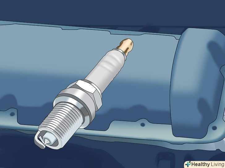Доторкніться різьбовим ділянкою свічки до голого металу.з підключеним до свічки високовольтним проводом доторкніться різьбовим ділянкою свічки запалювання до голого ділянки металу вашого автомобіля. Це може бути будь-яку ділянку без фарби або ж сам двигун.- Не забувайте про засоби індивідуального захисту. На наступних кількох кроках ризик ураження електричним струмом дуже високий, якщо ви проігноруєте дотримання заходів безпеки.