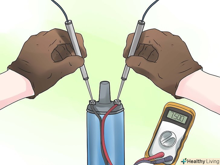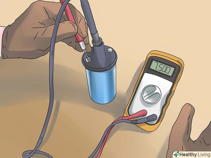 Зніміть котушку з автомобіля.нижчеописаний тест-єдиний спосіб переконатися, що Котушка запалювання повністю справна. Якщо у вас є омметр, прилад, який вимірює електричний опір, ви можете точно виміряти параметри котушки запалювання і визначити її функціональність кількісно, на відміну від способу, описаного вище. Але для цього доведеться зняти її з автомобіля, щоб мати легкий доступ до електричних контактів.- Подивіться в інструкції до автомобіля, як зняти котушку запалювання. Вам доведеться від'єднати дроти, що йдуть до розподільника запалювання, а потім відкрутити її від кріплення гайковим ключем. Переконайтеся, що запалювання вимкнено.