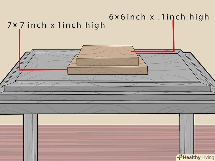Закріпіть каркас. встановіть каркас в центрі даху і відзначте його олівцем. Нанесіть клей на нижню частину рамки і приклейте її до даху. Додайте 4 опорних блоків у внутрішні кути рамки, як це показано на малюнку.