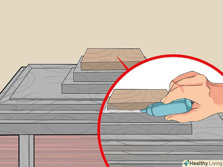 Прикріпіть верхівку. нанесіть клей на опорні блоки і встановіть на них верхівку даху. Вона повинна знаходитися на одному рівні з верхньою частиною рамки.