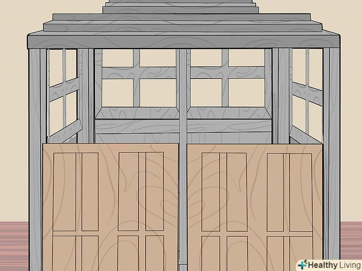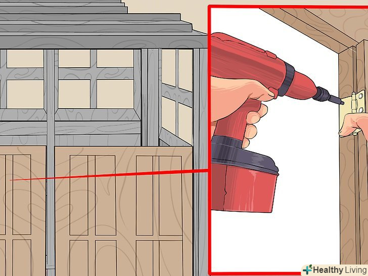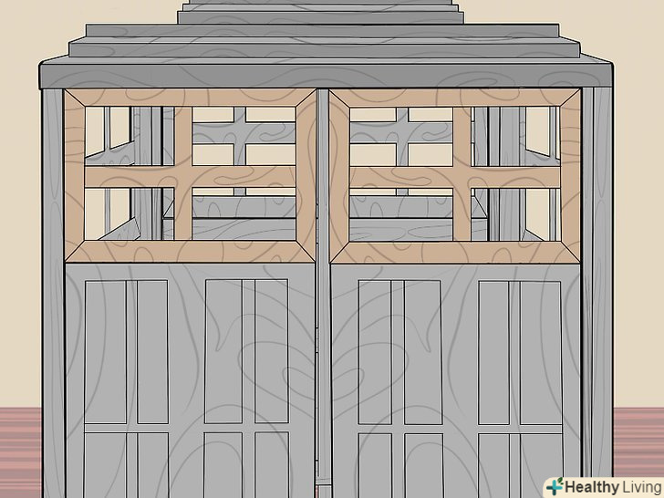 Прикріпіть петлі. двері ТАРДІС відкривається від себе, тому прикріпіть петлі з внутрішньої частини правої дверної панелі. Помістіть дверну панель в центрі вертикальної стійки, а потім прикріпіть до неї петлі. Перевірте, чи нормально відкриваються двері.
