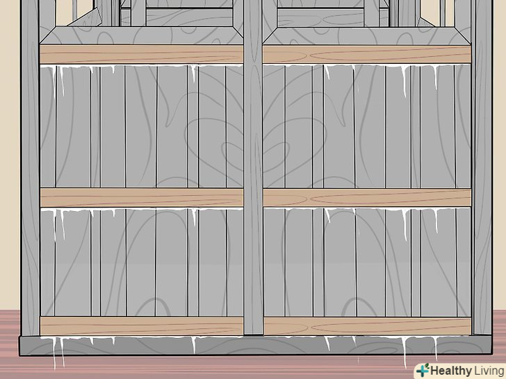 Додайте горизонтальну обшивку. починаючи з 0.05 u від нижньої частини дверної панелі, зробіть позначку через кожні 0.5 u. зробіть це з обох сторін вертикальної обшивки і на краях дверних панелей. Прикріпіть деталі горизонтальної обшивки в кожному зазначеному місці.