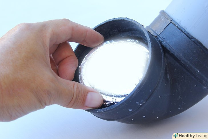 Вставте дзеркало з одного кінця під кутом 45 градусів. використовуйте клейові подушечки або двосторонній скотч для закріплення дзеркала всередині коліна [4] . Налаштуйте дзеркало так, щоб було видно кут іншого коліна; або зніміть коліно і налаштуйте дзеркало, поки не отримаєте пряму видимість крізь трубу.
