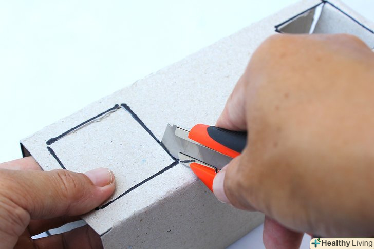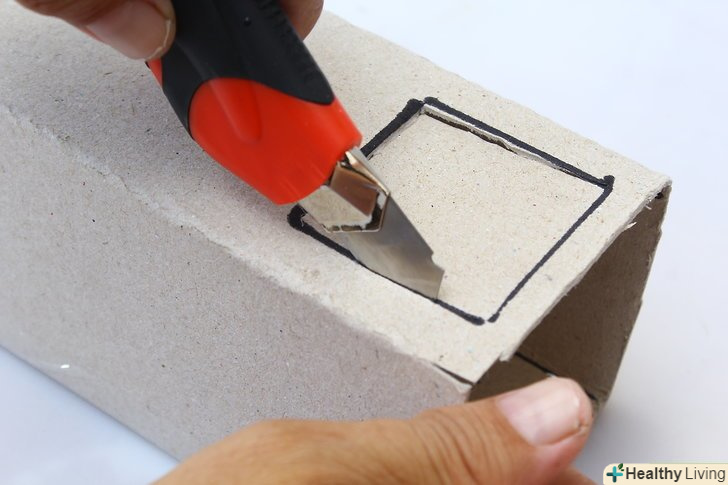 Зробіть виріз з одного боку, під розмір дзеркала. покладіть дзеркало на пачку (відступивши 5-6 мм від краю), розмітьте виріз олівцем, зробіть виріз по розмітці.- Виріз найзручніше робити канцелярським ножем, але використовуйте його тільки під наглядом дорослих, тому що ніж дуже гострий.
