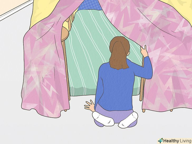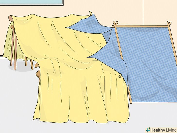 Накиньте на конструкцію простирадло або ковдру. трохи розсуньте предмети меблів, щоб простирадло виявилася натягнутою. Так конструкція буде більш міцною, а всередині виявиться більше місця. Деякі простирадла можуть триматися на меблях самі по собі, інші ж доведеться закріпити по кутах і в середині довгих сторін англійськими шпильками або скотчем. [1] при бурхливих іграх простирадла практично завжди злітають, але подібне притулок так легко і просто відновити, що цей факт не має особливого значення.- Іноді простирадла потрібно закріпити стопками важких книг або декількома кнопками, але уникайте цього, якщо притулок призначений для маленьких дітей. Зрештою, все це звалиться або відвалиться, а вам зовсім не потрібно, щоб хто-небудь при цьому поранився.