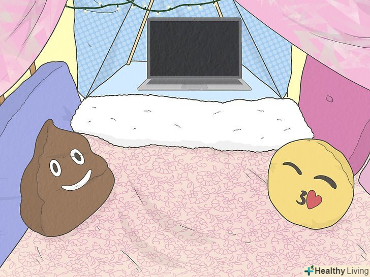 Облаштуйте внутрішній простір притулку. покладіть туди подушки, ковдри, м'які та інші іграшки! Щоб створити справжній палац, додайте всередину скриню з іграми, легкі закуски, маленький телевізор або мініатюрний холодильник. Заберіться всередину і відпочиньте секунд тридцять перед тим, як приступити до першої битви на подушках.
