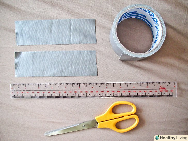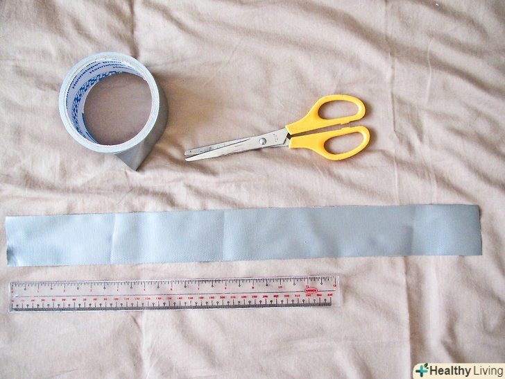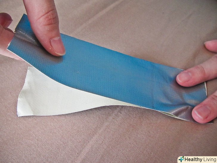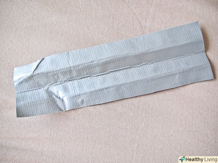 Загорніть шматки клейкої стрічки три рази. загорніть клейку стрічку три рази, змінюючи сторону з кожною складкою, як ніби ви робите віяло.
