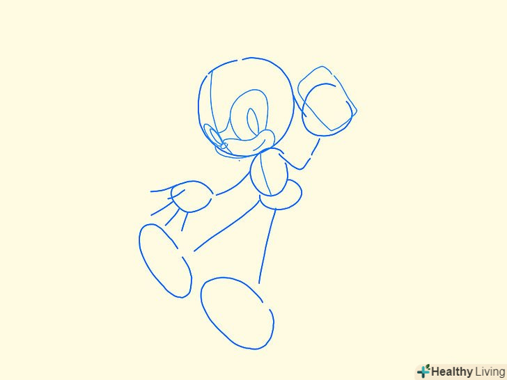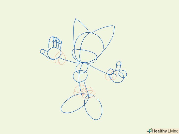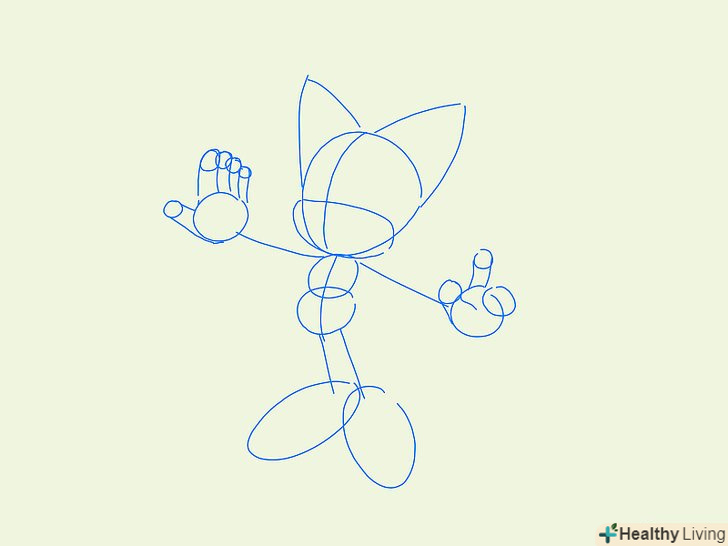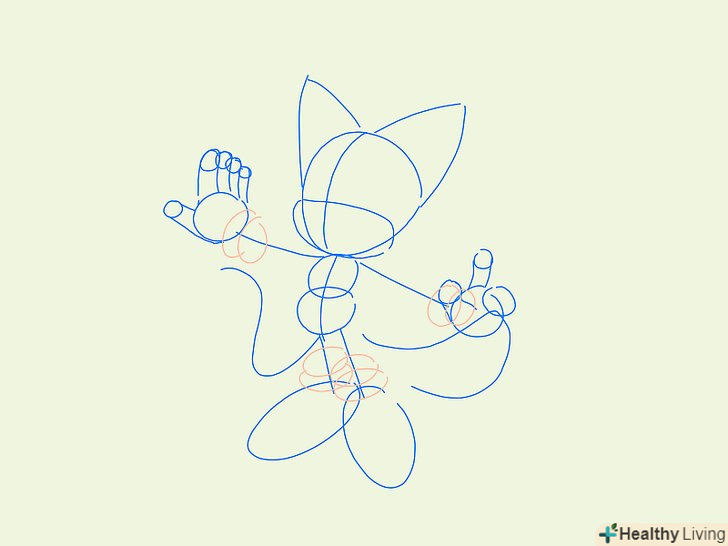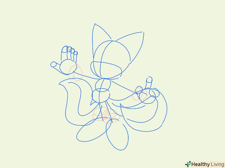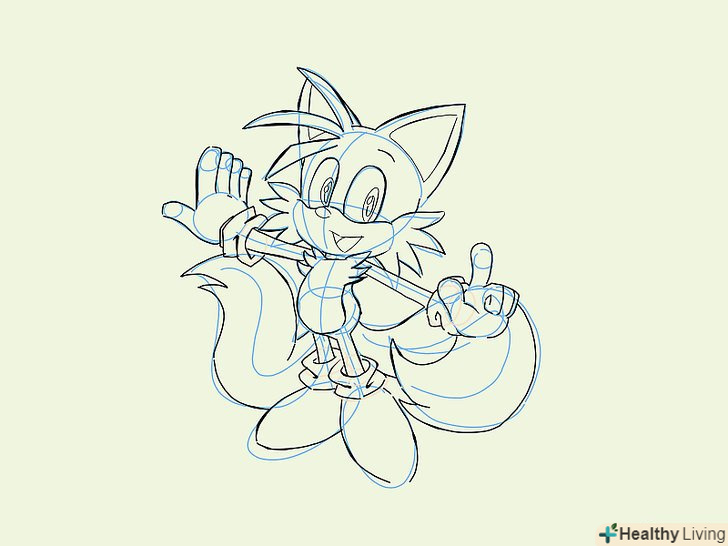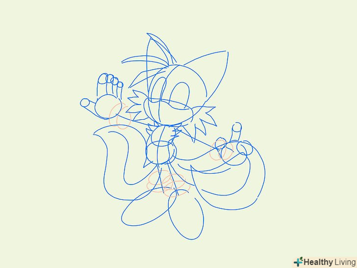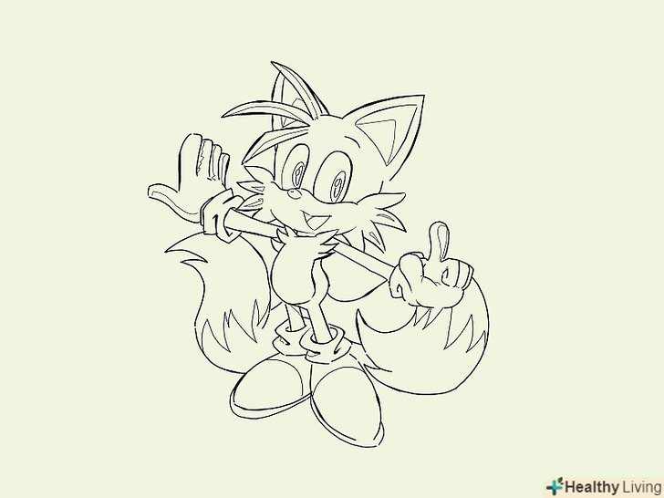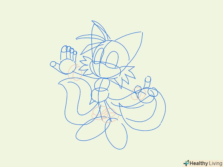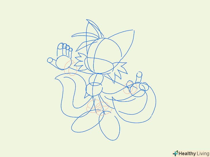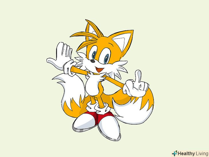 Додайте рот і вуха. вуха у Тейлза великі, а рот займає приблизно 1/3 частина його голови.