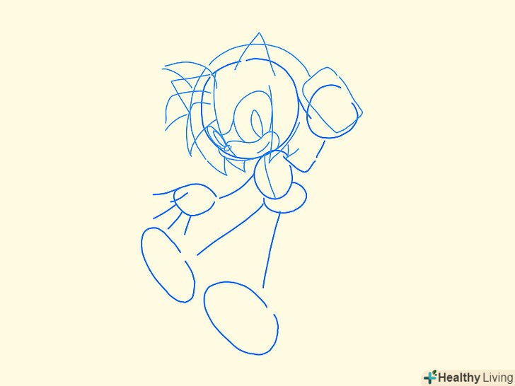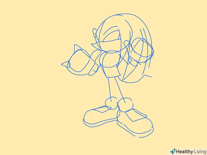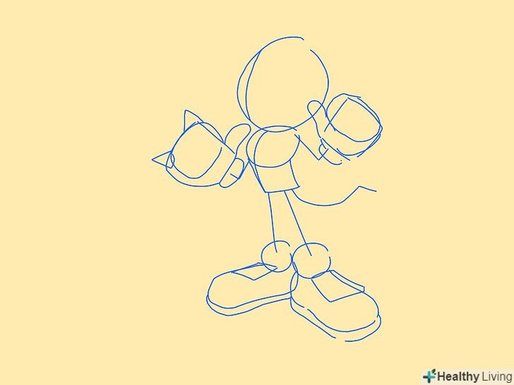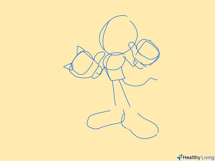 Зробіть начерк положення ніг і тіла. також додайте місце вух.