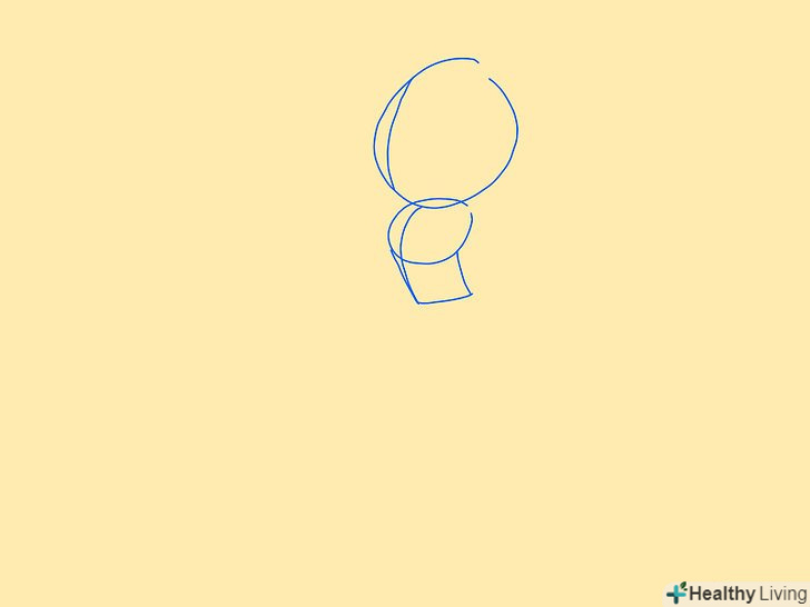 Зробіть начерк великого кола і кола поменше, приєднаних один до одного. це буде начерк тіла і голови.