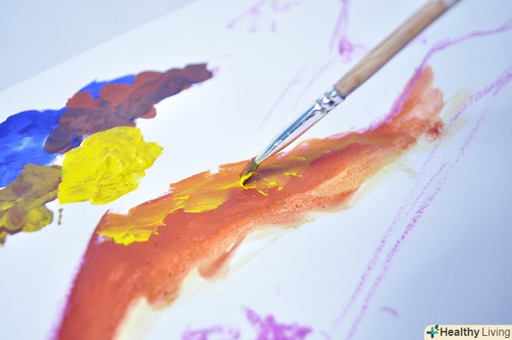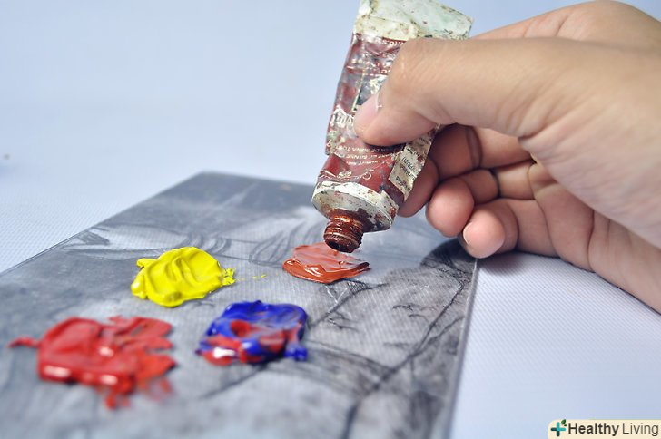 Видавіть трохи фарби на палітру і змішуйте кольори. розкладіть жовтий, синій, червоний і великий мазок білого на деякій відстані один від одного. Додатково використовуйте Сієну Палену. Залиште всі інші кольори в коробці, якщо це був подарунковий набір.