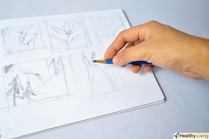 Зробіть ескіз "нотан" картини в своєму альбомі або на папері з сірим або чорним олівцем або пером, використовуючи олівець в якості сірого. Якщо це квадрат, це квадрат. Якщо це прямокутна або овальна картина, вирішіть, чи буде це вертикальний " портрет "або горизонтальний"пейзаж". Зробіть нотан дуже маленьким, тільки щоб розмістити світлу, темну і середню область картини. Вони можуть варіювати від розміру великої поштової марки до розміру візитної картки. Ідея полягає в тому, щоб побачити картину в мініатюрі. Зробіть кілька варіантів, поки не знайдете кращий дизайн, не турбуючись про деталі.