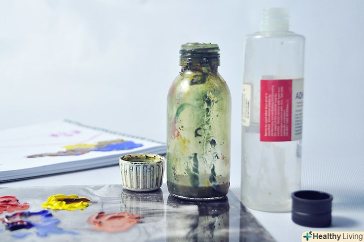 Підготуйте трохи масла в одній чашці і розчинник в іншій. протріть кисті і мастихін. Промийте кисть, якщо ви використовували її для колірного дослідження, використовуючи турпеноїд: просто опустіть її в розчинник і протріть ганчіркою.