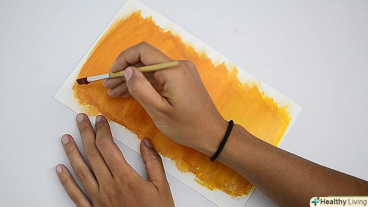 Пофарбуйте лист в один тон. Виберіть для фонового кольору більш темну фарбу і заґрунтуйте нею всю призначену для фарбування поверхню. Наносите фарбу широкими мазками. [13]- Цей метод можна використовувати і без попередньої грунтовки листа. Просто використовуйте глазур, щоб розвести фарбу і зробити її прозорішою. [14]