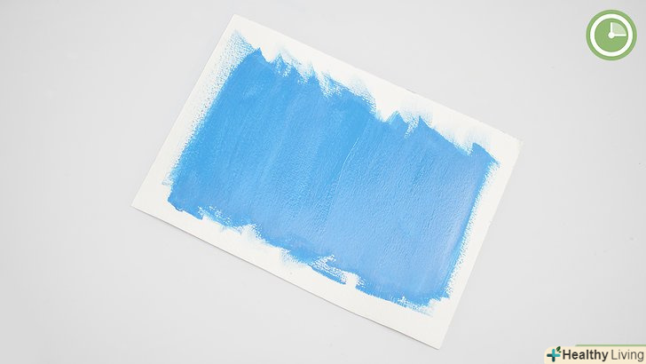 Загрунтуйте лист одним з двох кольорів, які ви збираєтеся змішати. як правило, для фону вибирають більш темний колір. Широкими мазками загрунтуйте лист. Дайте фарбі повністю висохнути. [8]- Наприклад, якщо ви хочете зобразити небо, на якому кольори плавно переходять один в інший, заґрунтуйте лист середнім синім тоном. Дайте фарбі повністю висохнути.
