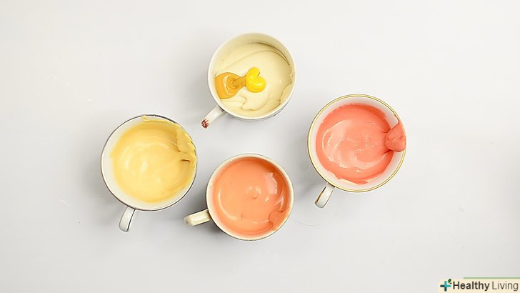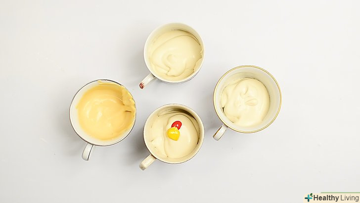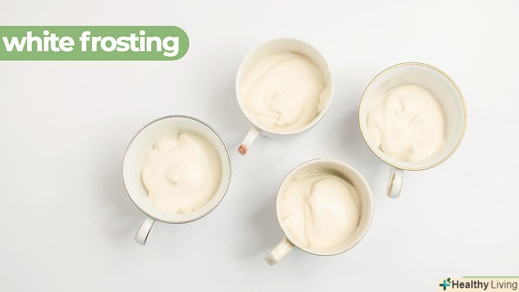 Підготуйте кілька зразків глазурі. вам знадобиться мінімум чотири невеликих мисочки або розетки. Покладіть в кожну ємність приблизно 60 мл (1/4 мірної чашки) готової білої глазурі.- Пофарбувати глазур в помаранчевий колір можна різними способами. Для кожного з них буде потрібно біла глазур. Вам знадобиться як мінімум чотири зразки білої глазурі, але краще розширити поле для експериментів і приготувати від шести до дванадцяти мисочок з білою глазур'ю.
